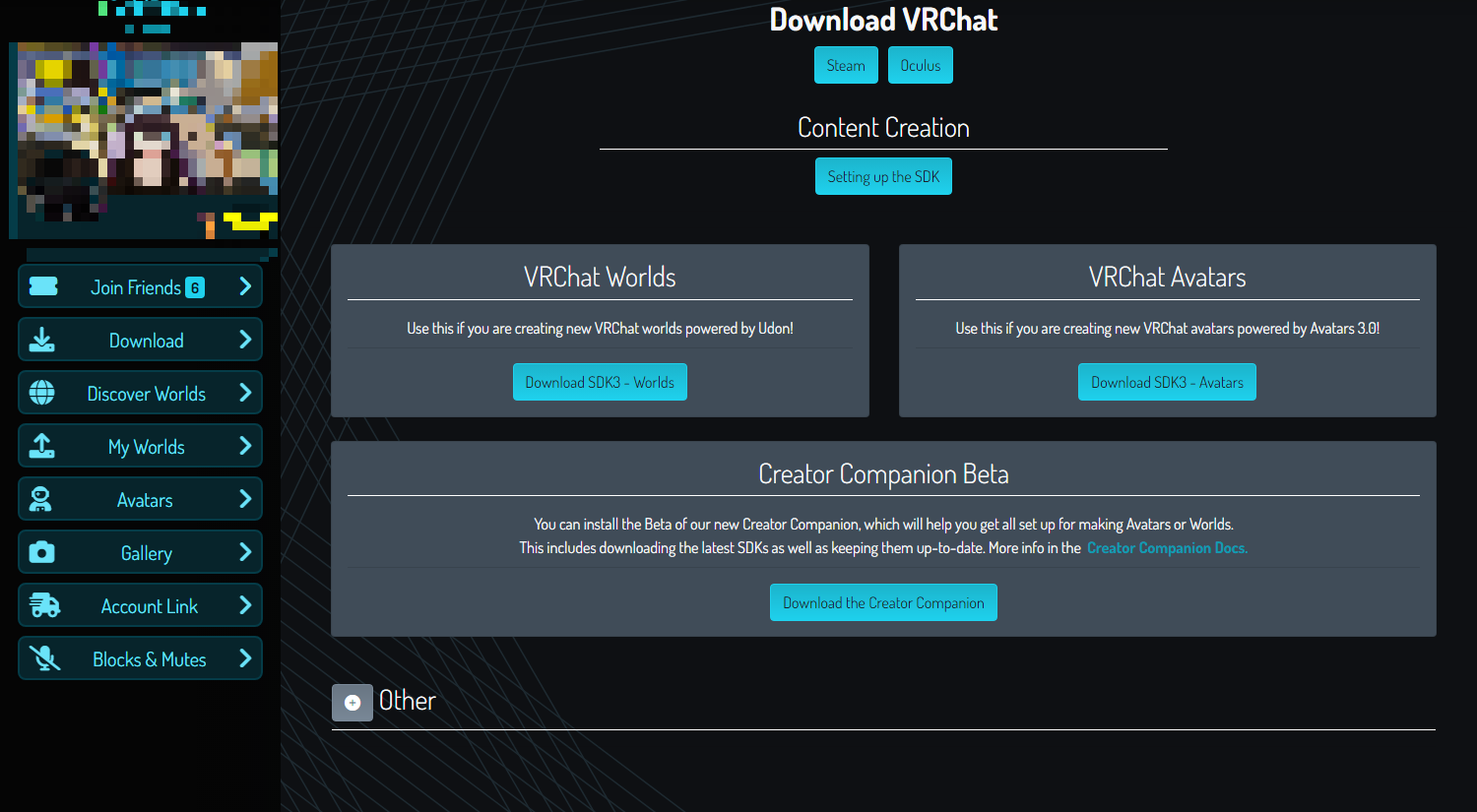 VRChat SDK를 다운받기 위해 https://hello.vrchat.com/으로 가자. 바이러스 안 걸린다.