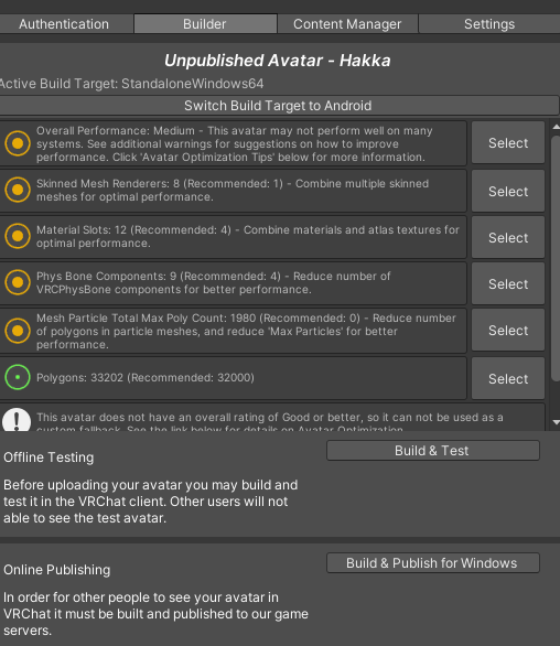 Switch Build Target to Android는 오큘러스 퀘스트 단독구동인 사람들을 위한 아바타를 업로드하게 바뀌는데, 이건 여건이 된다면 나중에 설명하겠다.