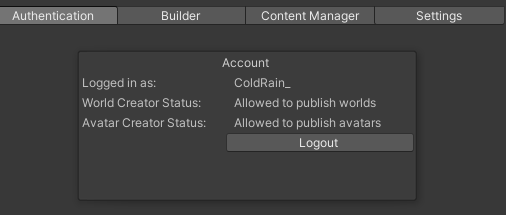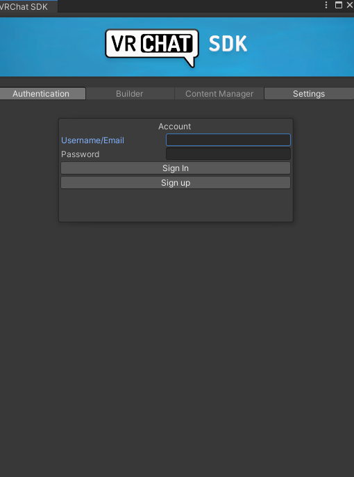이렇게 창 위에 VRChat SDK가 생겼고 클릭했을 때 이렇게 나온다면 제대로 된 거다.