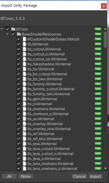 그런데 잠깐, 아바타를 임포트하기 전에 이 아바타가 사용하는 쉐이더를 임포트해야 한다.