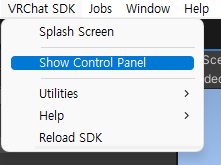 아까 봤던 VRChat SDK 탭의 Show Control Panel을 누른다.