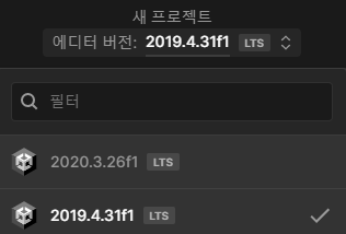 지난번에 받은 유니티 허브를 실행해서 오른쪽 위의 새 프로젝트를 눌러주자.