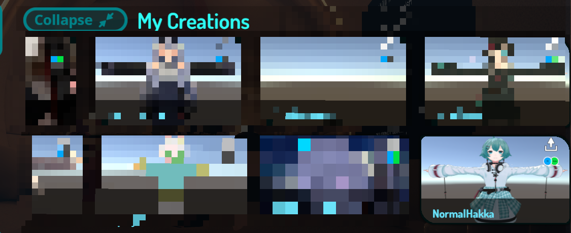 이런 식으로 My Creations 탭이 생기고 거기에 업로드한 아바타가 있을 것이다.