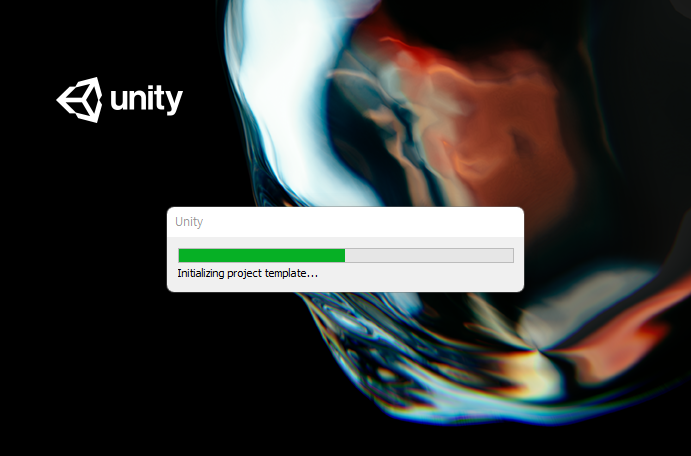 유니티 허브에서 뭐가 잠깐 빙글빙글 돌다가 이런 게 모니터 가운데에 떠있을 것이다. 안 보이면 있는 창들 다 닫으면 보이긴 하지만 별로 중요한 건 아니고, 시간이 조금 걸리니 기다리자.