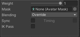 주의사항:레이어 이름 오른쪽의 톱니바퀴를 눌러서 뜨는 창의 Weight를 맨 오른쪽으로 당겨 1로 만들어주자. 이렇게 해두지 않으면 레이어의 발언권이 없어서 애니메이션이 재생되지 않는다.