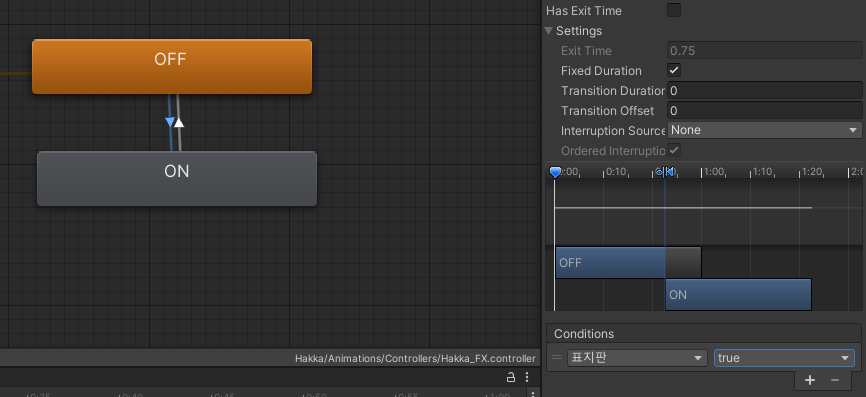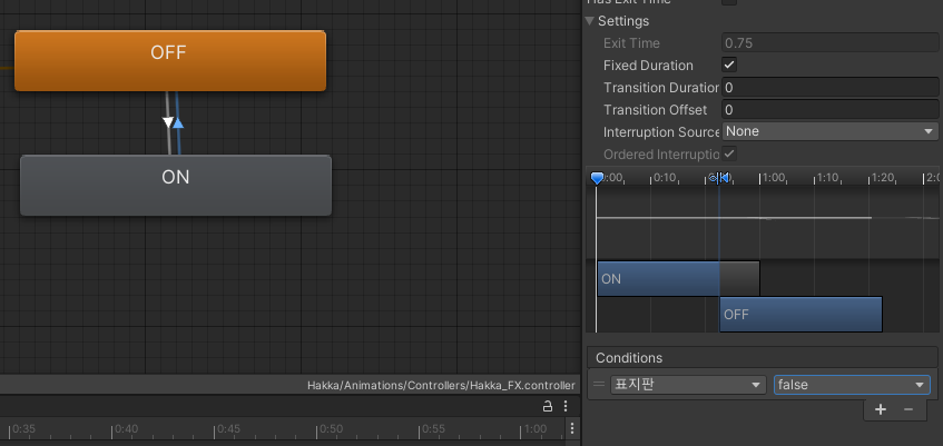 Has Exit Time의 체크를 해제해주고, Transition Duration은 0으로 해준다.