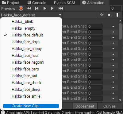 Animation 창에 들어가서 저 설명할 수 없는 자리를 클릭해서 Creat New Clip...을 클릭하자.