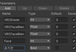 익스프레션 파라미터에서 Add를 눌러 아까 만든 파라미터와 동일한 이름과 종류로 파라미터를 추가해주자.