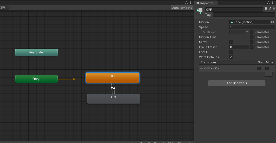 오프 애니메이션도 똑같이 해서 만들어준다.