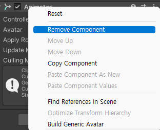 만약 맨 상위가 아니라 상위 오브젝트 안의 하위 오브젝트에 애니메이터가 들어있는 거라면 그냥 놔둬도 된다.