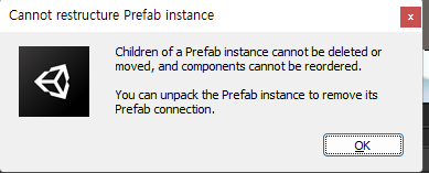 대충 이거 삭제하려면 프리팹에서 삭제하라는 말인데, 이렇게 하면 100퍼 후회한다.