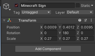 일단 아바타와 넣고 싶은 물건을 준비하자. 나는 마인크래프트 표지판을 머리 위에 달아보도록 하겠다. 이 표지판 애셋은 직접 만들었지만 슬프게도 아직 공개적으로 공유할 생각은 없다.