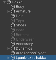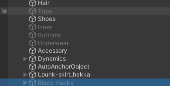이렇게 넣은 오브젝트 이하는 다 꼬리표가 붙는다. 이걸로 옷 입힐 준비는 끝났다.