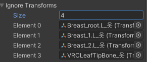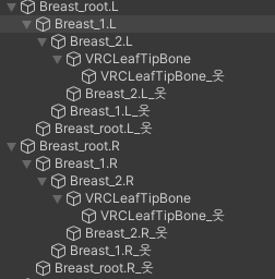 Breast 본의 경우 그냥 집어넣어버리면 가슴의 PhysBone이 그대로 굳어버려 돌가슴이 돼버린다. 강좌에 사용하는 하카 아바타는 해당 본이 없어서 쓰는 걸 까먹었었습니다. 죄송합니다.