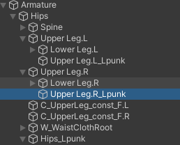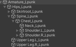 이런 식으로 각 옷 본을 이름이 같은 아바타 본들에 갖다넣어주면 된다. 이 과정의 설명은 뻔한 것이니 생략하겠다.