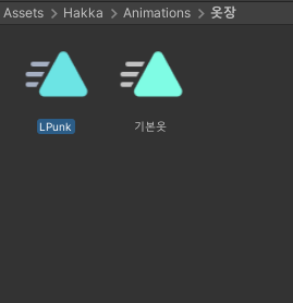 해당 애니메이션을 찾아가 선택하고 Ctrl+D키를 눌러 복사하고 다른 옷으로 이름을 바꿔주자.