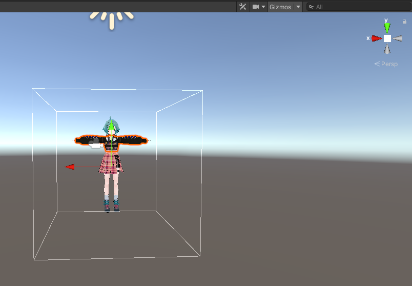 메쉬 렌더러의 Edit Bounds 버튼과 씬 창의 Gizmos 버튼이 모두 활성화되면 사진과 같이 바운드박스의 윤곽이 보인다. 기본 옷과 비교해가면서 해보자.